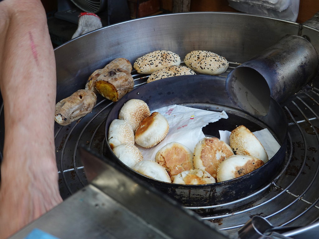 十一點就開賣的「源記赤肉胡椒餅」,一路賣到晚餐時間的七點整,但我六點抵達,一般大小的胡椒餅已經售完,僅剩小尺寸。不過不打緊,這樣剛好能多嚐鮮幾種,也不會佔太多胃容量。