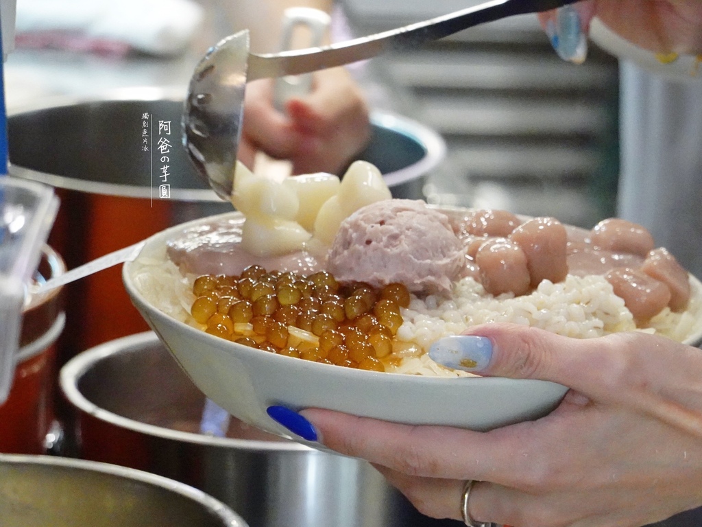我每次造訪點的都是這個招牌冰品,畢竟集結了所有我愛的食材,當然還有「阿爸の芋圓」的獨創蔗片冰。