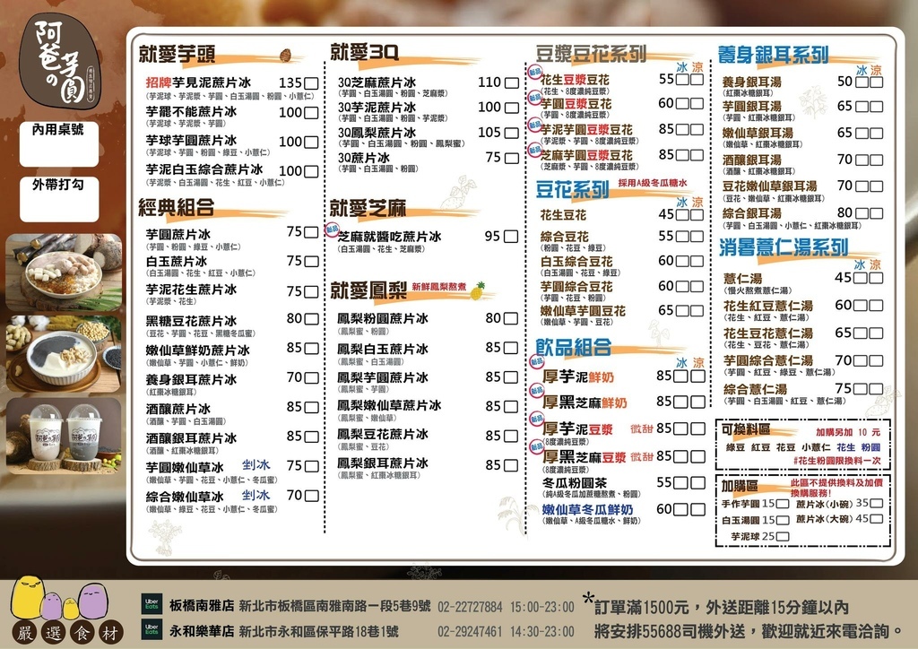 芋泥球/芋泥漿/芋頭/白玉湯圓/粉圓/小薏仁