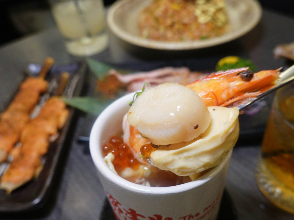 稱為海景茶碗蒸絕非浪得虛名,裡頭有著蝦子、生食級干貝、鮭魚卵,下方還有雞肉還有蛤蜊,一杯就能嚐到多種食材。