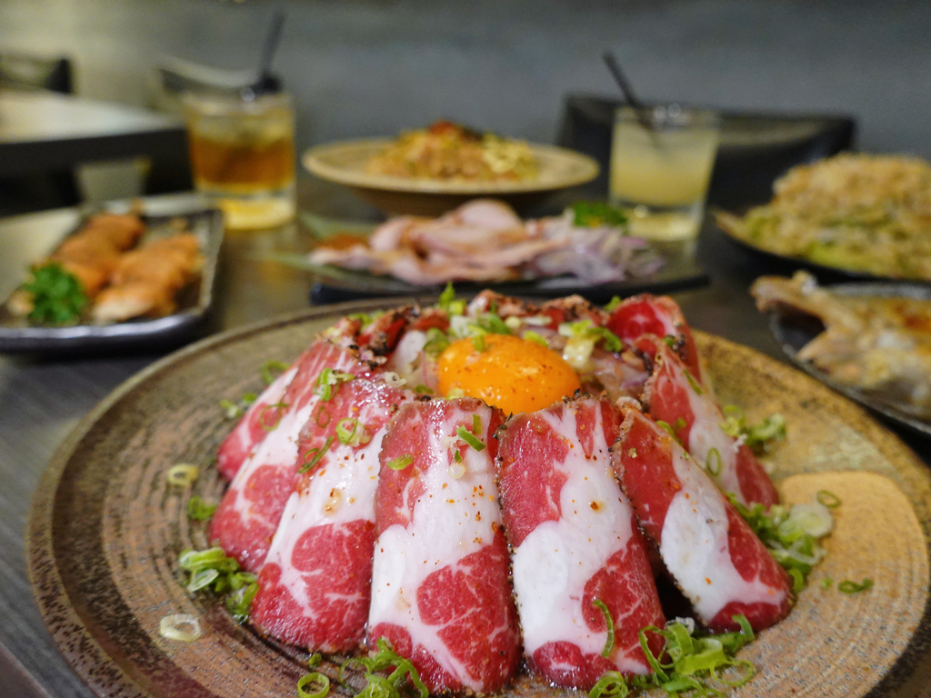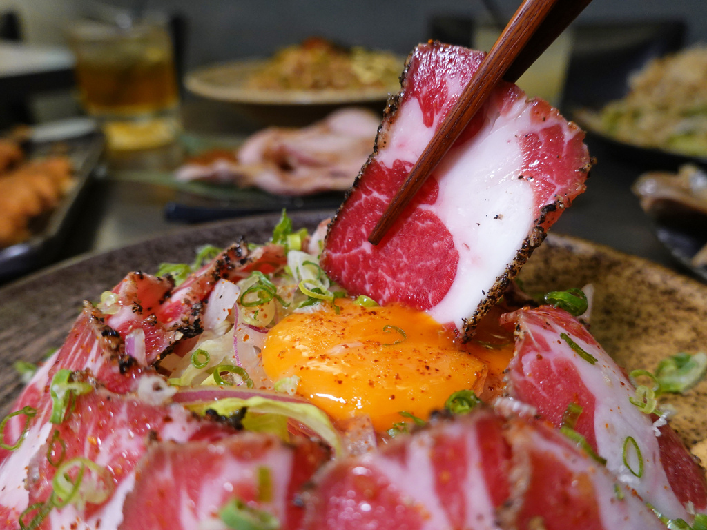 月見翼板生牛肉非常態菜色,是寫在店內黑板上的隱藏美食,畢竟生牛肉這種食材最講求的就是新鮮,有著無法大量囤貨的考量,所以是可遇不可求的限量美食。
