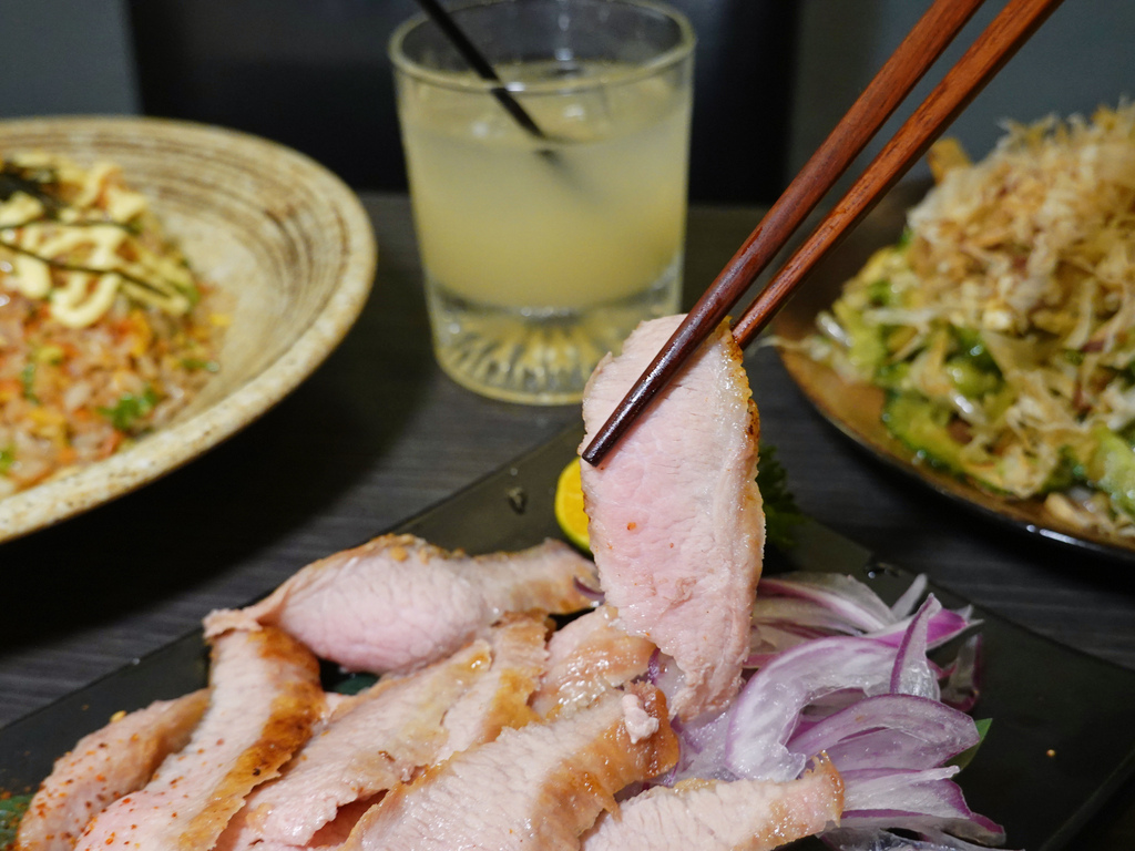 我喜歡吃居酒屋的其中之一個原因,除了可以原型食物選擇多,能喝到酒精飲品之外,還有充斥著我愛的食材,舉凡雞軟骨,跟這道松阪豬都是。