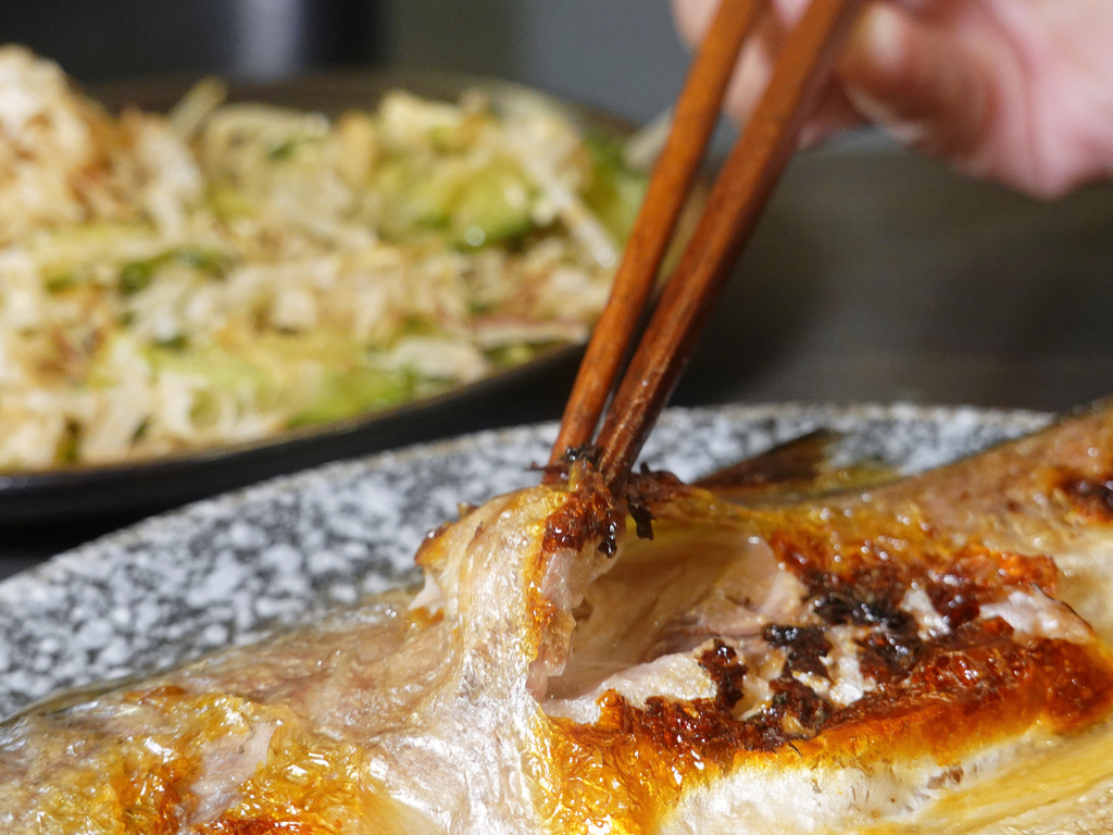 原本以為一夜干會以鹽做醃漬,所以鹹度較高,但這支花魚一夜干卻意外的好入口,鹹度上單吃也是沒有問題。而肉質部分細緻且富彈性,魚刺部分也很集中,所以更方便食用,魚皮的焦香氣也頗為加分。