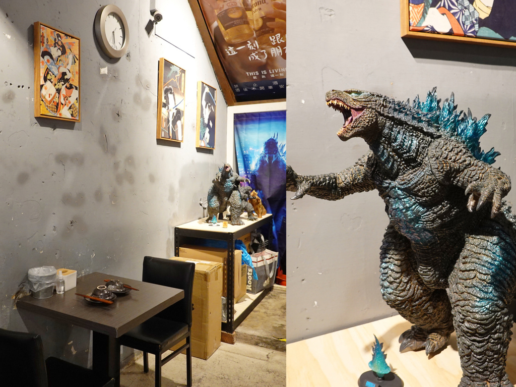 經營「日鶴串燒居酒屋」的團隊們年齡都很年輕,而從店內的許多擺設都能略知一二,角落的哥吉拉公仔格外吸睛。