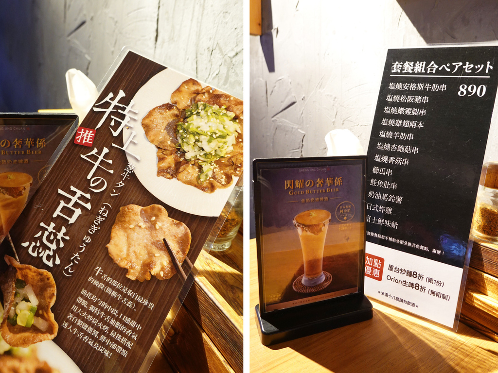 奶蓋搭配啤酒,則是我第一次看到,這也是「澠井川日本串燒專賣」的獨家自信之作。我選了香甜的芒果啤酒,跟奶蓋的鹹度和滑順感十分合拍,口感也很順口,清爽程度一口咕嚕咕嚕半杯就消失了。