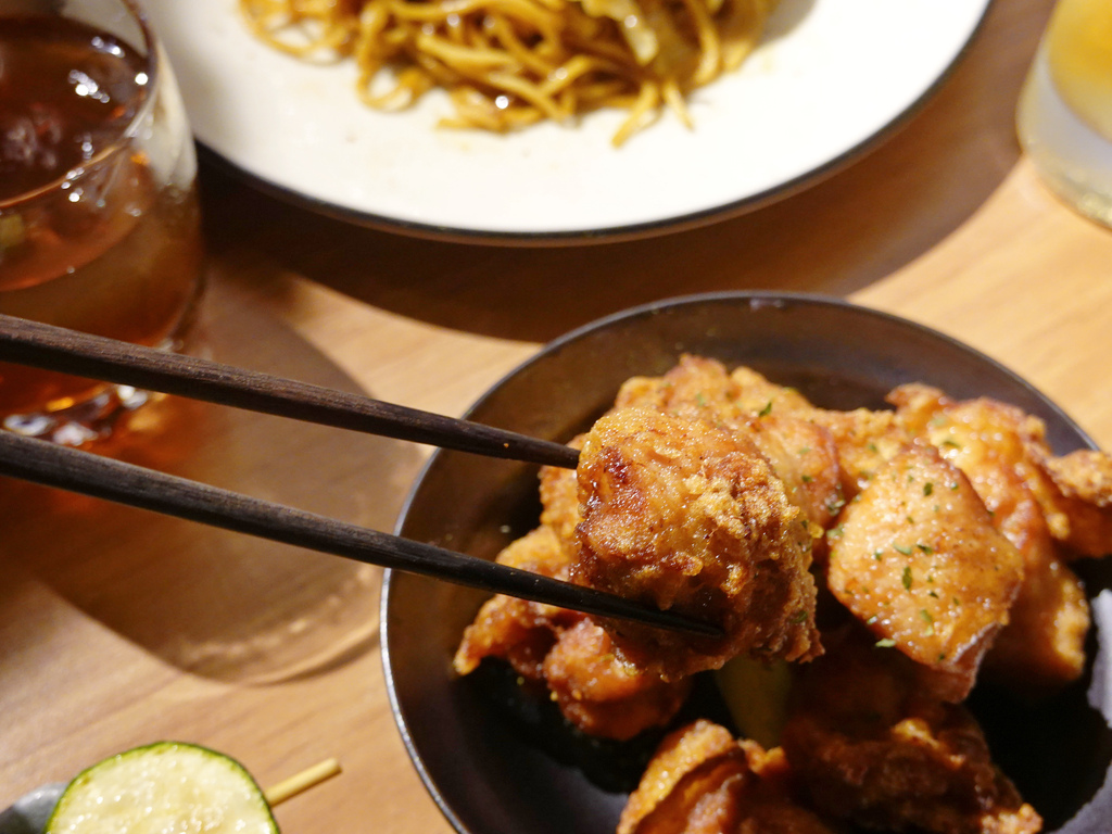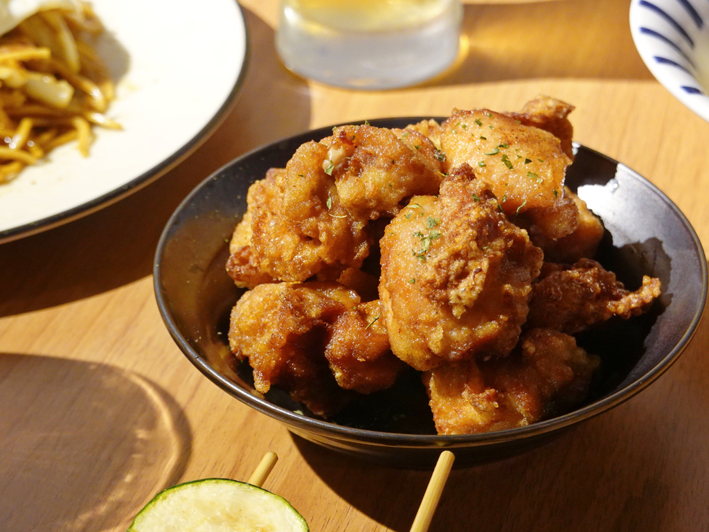 比起裹粉較厚的台式炸雞,薄皮的日式炸雞更得我心一些,而且有事先醃漬過,所以單吃就很美味。