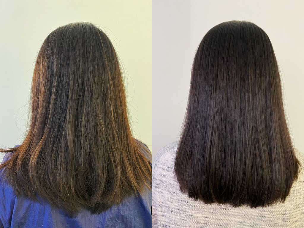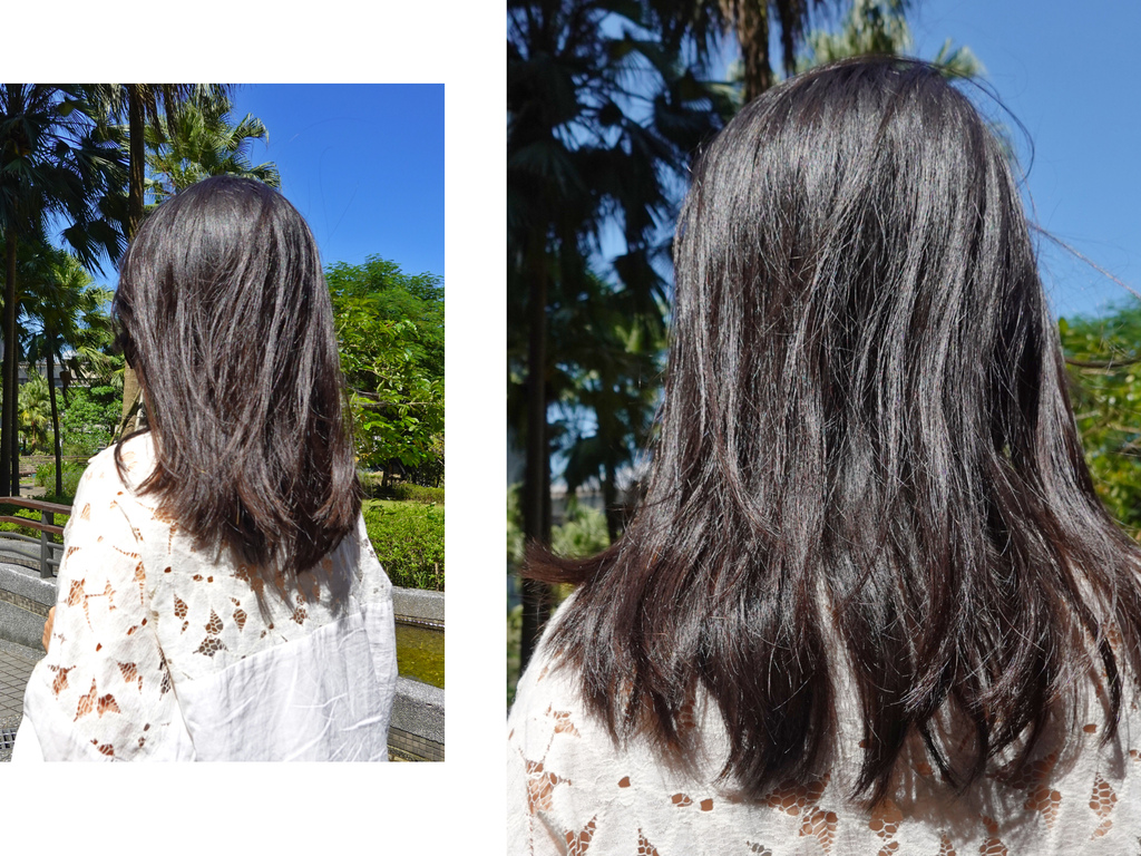 這前後對照圖我想不用我多說,很明顯可以看到髮質的差異,如果有各種頭髮的疑難雜症,可以先透過IG或是line等管道和「這裏salon&meal」的設計師諮詢,我相信以他們的專業度,能得到很顯著的改善。