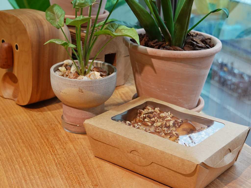 以長方牛皮紙盒包裝,就飯店層級來看的確是有些陽春,不過內容物的質對我來說還是比較重要些。上頭滿滿的核桃碎和糖霜,倒是挺誘人的。