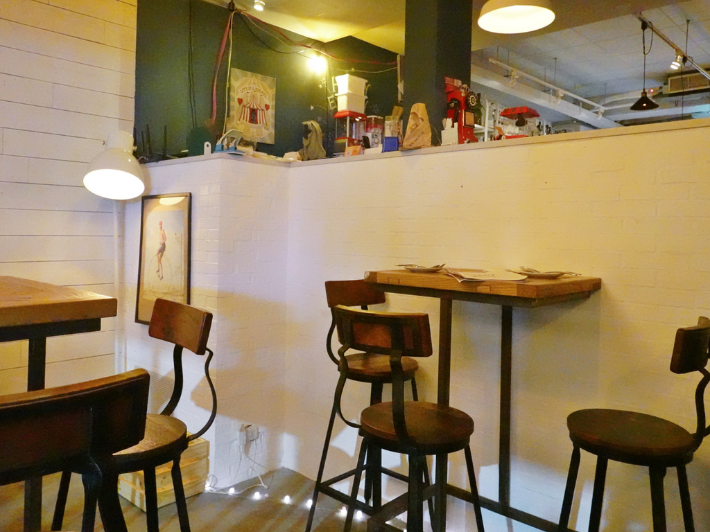 「花生俱樂部Peanut Club」的空間有點樓中樓的概念,會先經過高腳椅座位區,才會沿著小樓梯踏上第二層的空間。