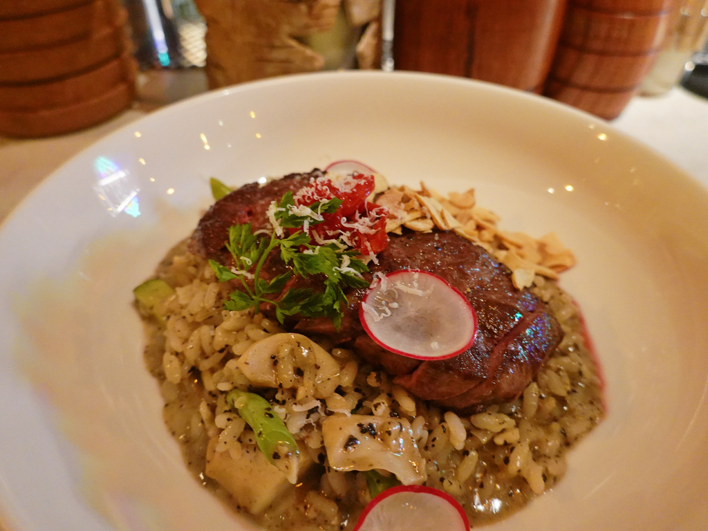 燉飯以餐酒館來說是有水準的,米芯帶硬度,松露和奶香融合的很好,不會過膩,也不會淪為水味。