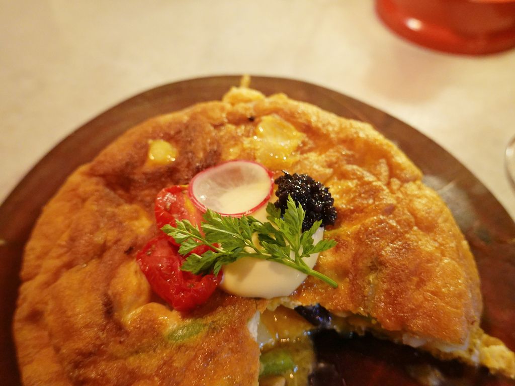 澎鬆的馬鈴薯烘蛋上方式魚子醬、風乾番茄以及日式美乃滋,增添許多風味。