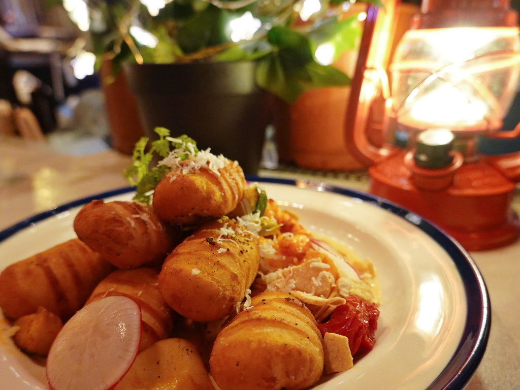 手工麵疙瘩吃得出來馬鈴薯偏多,是鬆軟帶有香氣,而非常少見的麵粉感,炸的乾爽香酥,多層口感增添風味,像是零食般極好入口。