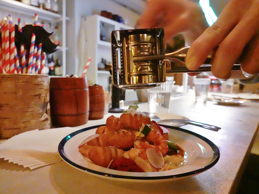 上桌後,店員還會直接桌邊削上起司,在感官上加分不少。
