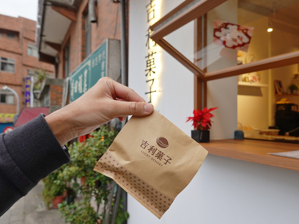 在包裝上,「吉利菓子」也是下了功夫,質樸的牛皮紙袋上除了印有店名外,還有顆飽滿討喜的銅鑼燒。下方“LUCKY DESSERT”字樣,似乎也賦予了這銅板甜點一種魔力,一種吃下就可以幸運的魔力。