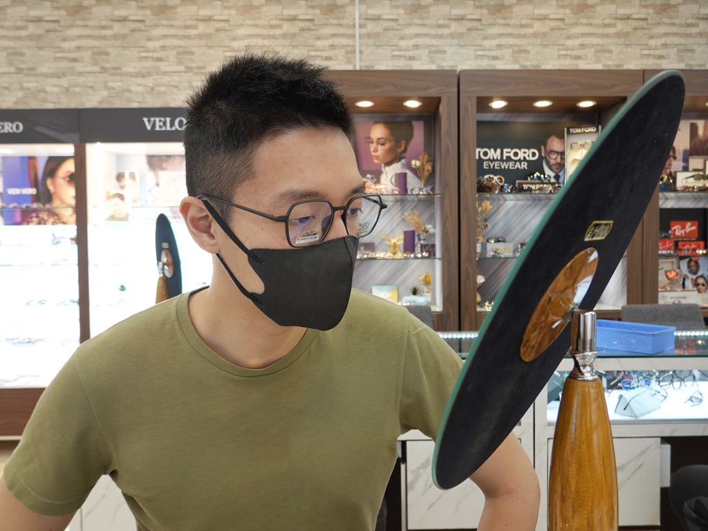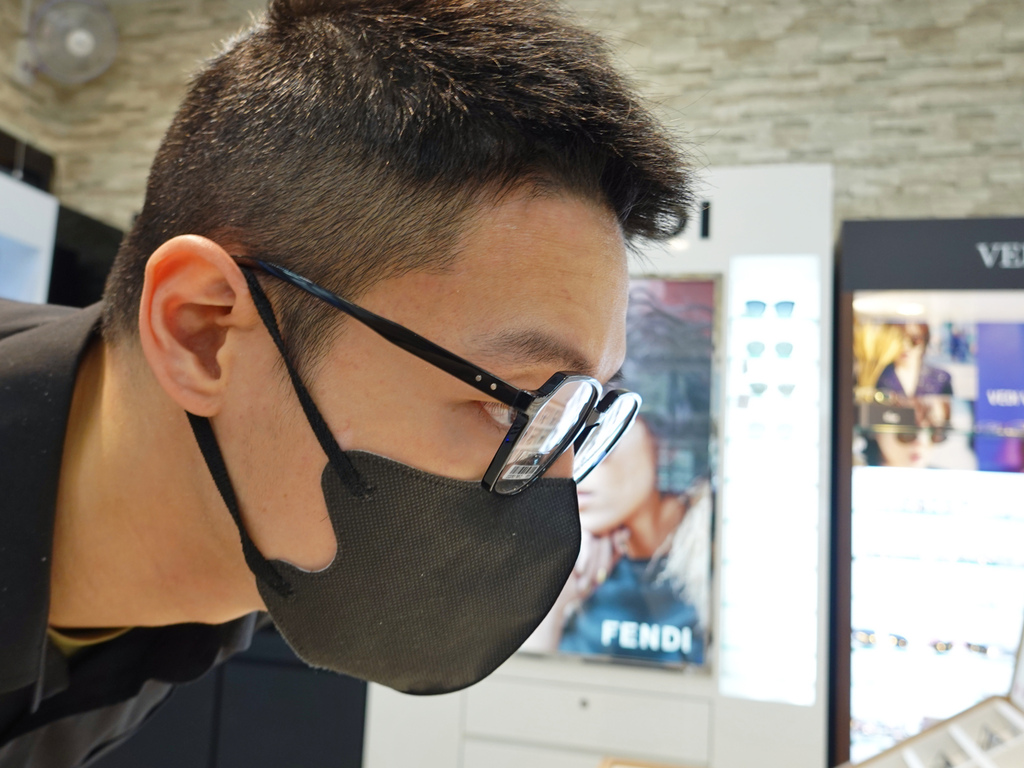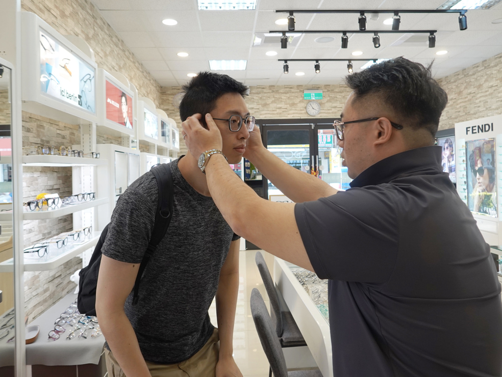 而在男友P戴上眼鏡後,老闆也很仔細且細心地做各種調整,畢竟每個人的五官都有些許的不同,而眼鏡則是每天長時間配戴著,貼合跟舒適感是極為重要的。