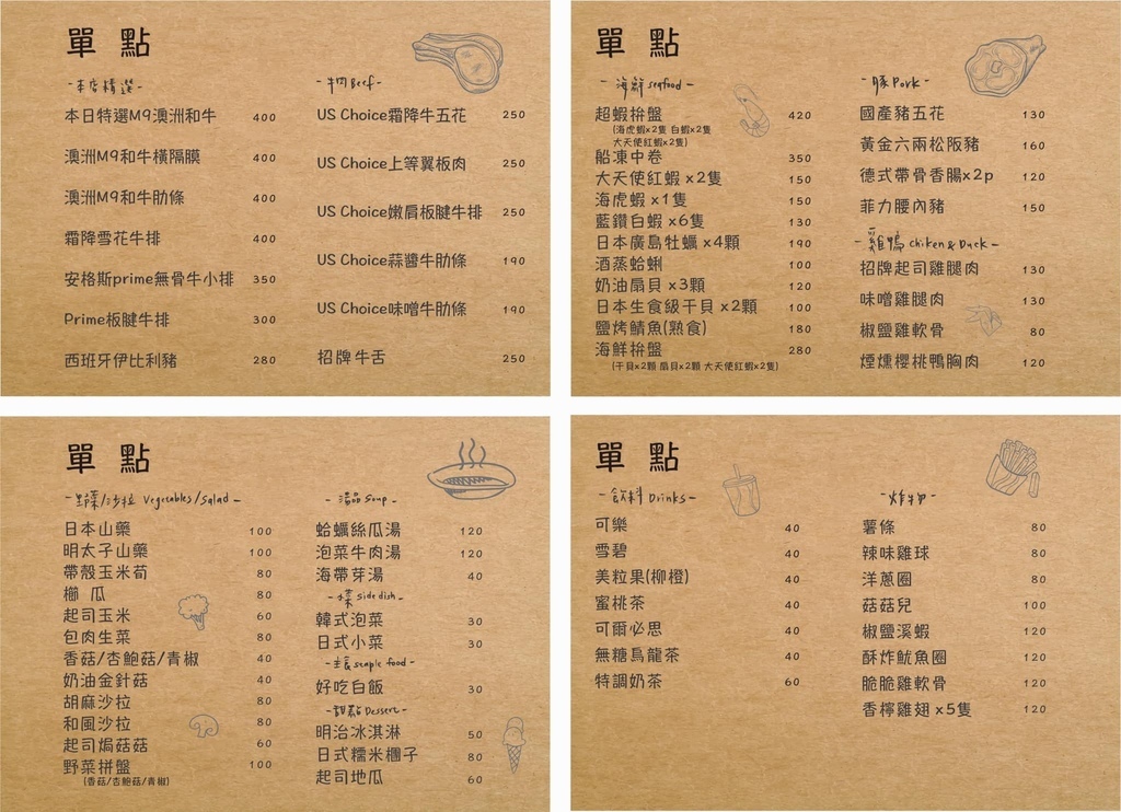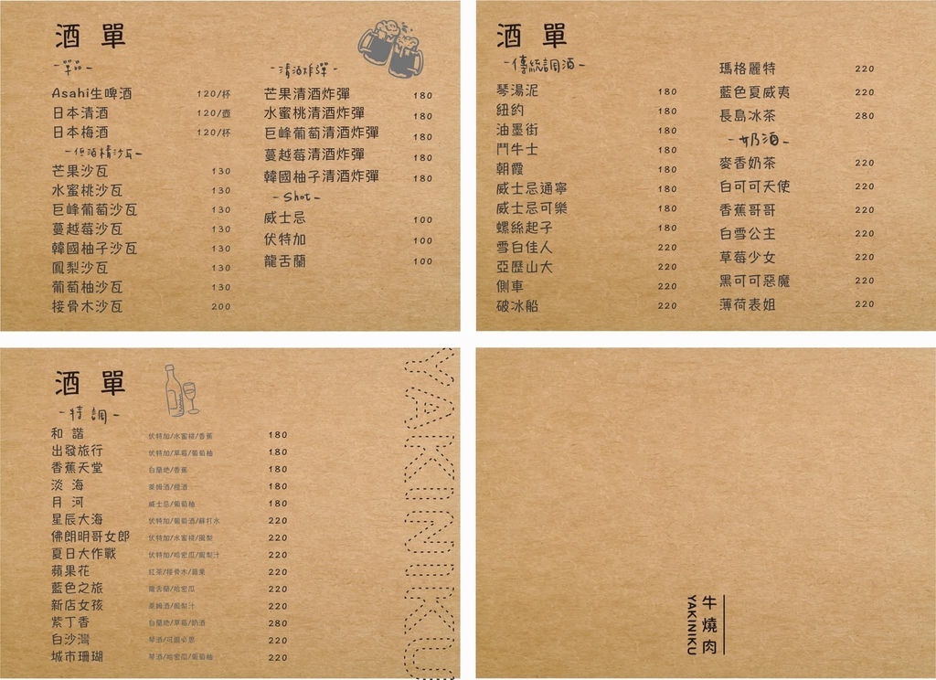 烤肉店有軟性飲料跟酒精飲品不稀奇,有調酒倒是少見,和三五好友在這享用美食,也不用找地方續攤了,營業到半夜十二點的「牛燒肉Yakiniku」就能滿足想吃飽又想盡興的雙重願望。