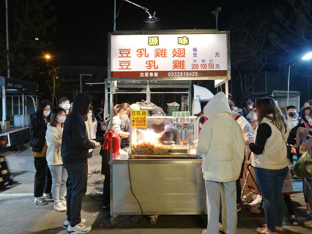 攤販皆為流動性,但每週多會固定出沒,其中不乏熱門的人氣店家,「源味豆乳雞翅」就是其中一間。