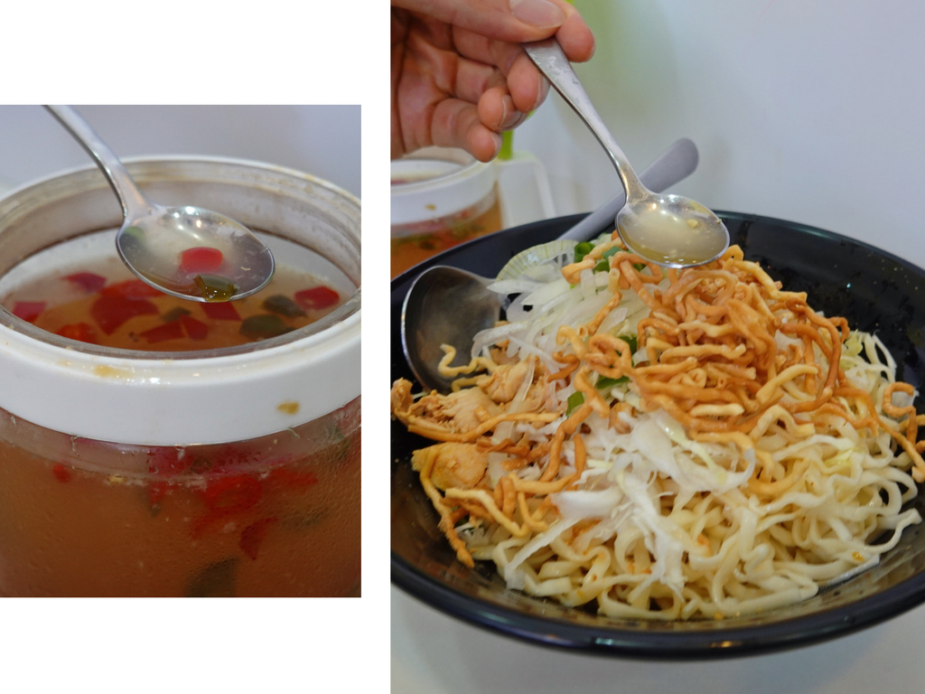 而閃麵的醬汁較想像中來的清淡與清爽許多,這裡的老饕吃法就是再加上店家特製的檸檬辣椒醬,而且要加五六瓢以上才夠味,重香氣而非鹹味與辣味。