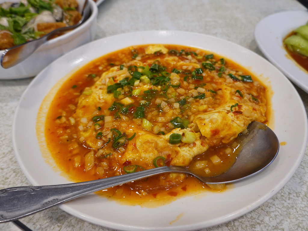 整體算是重口味,下飯程度不容小覷,不過勾芡跟甜鹹交錯的料理並不是很合我胃口,所以無法多作評論,鬆軟的烘蛋口感我倒是滿愛的。