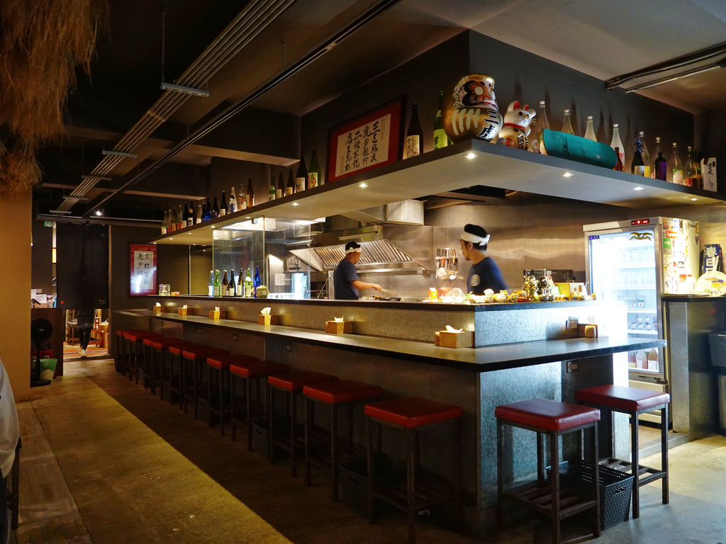 店內是很標準的日式居酒屋擺設及氛圍,由吧台跟桌型座位組成。