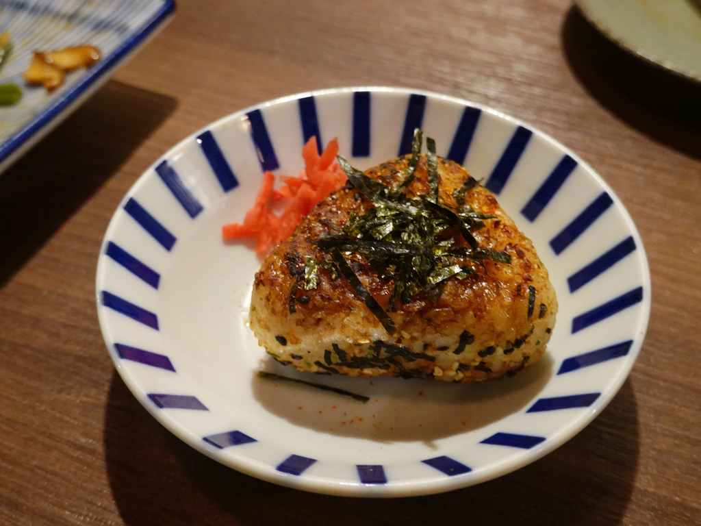 飯糰烤的略乾,裏頭有些鮭魚鬆,可作為居酒屋內較省荷包的裹腹餐點。