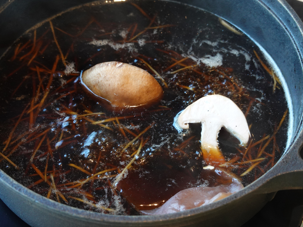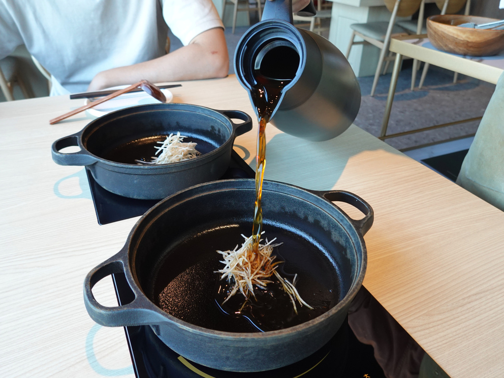但相較起「Mo-Mo-Paradise」,「湫禾 壽喜燒」更為清爽些,且有著牛蒡的獨特清新香氣,如果想調整濃淡,一旁的清水跟醬汁也可以自行取用。