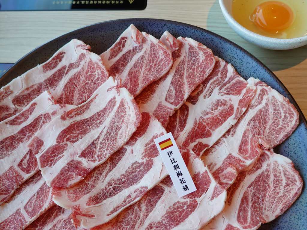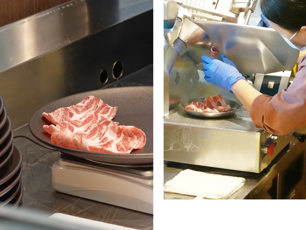 伊比利梅花豬片的較厚,由於需涮至全熟的關係,比較帶嚼勁,越咀嚼能感受到油脂的堅果香氣,整體我還是挺喜歡。