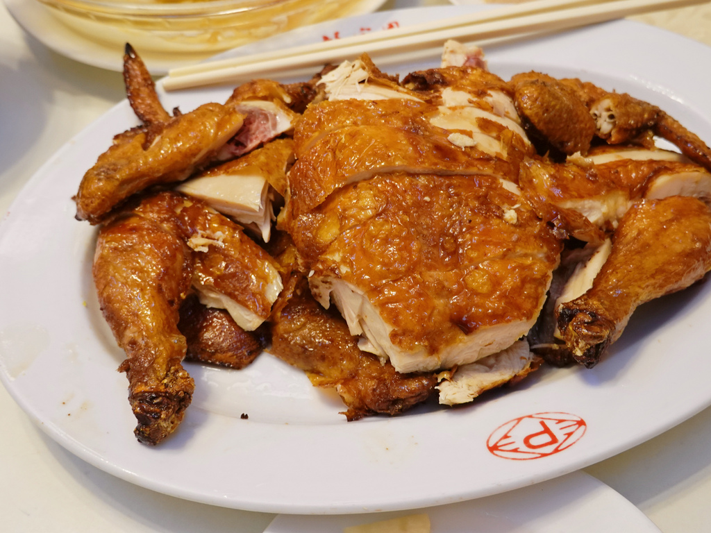 剛端上桌的偏深焦色,我在心裡已先預想較乾柴的肉質,沒想到一口咬下,先是又香又酥的雞皮,接著是嫩且多汁的雞肉,連雞胸的口感都如此好,令我驚豔,遑論那大家搶著要吃的雞腿了。