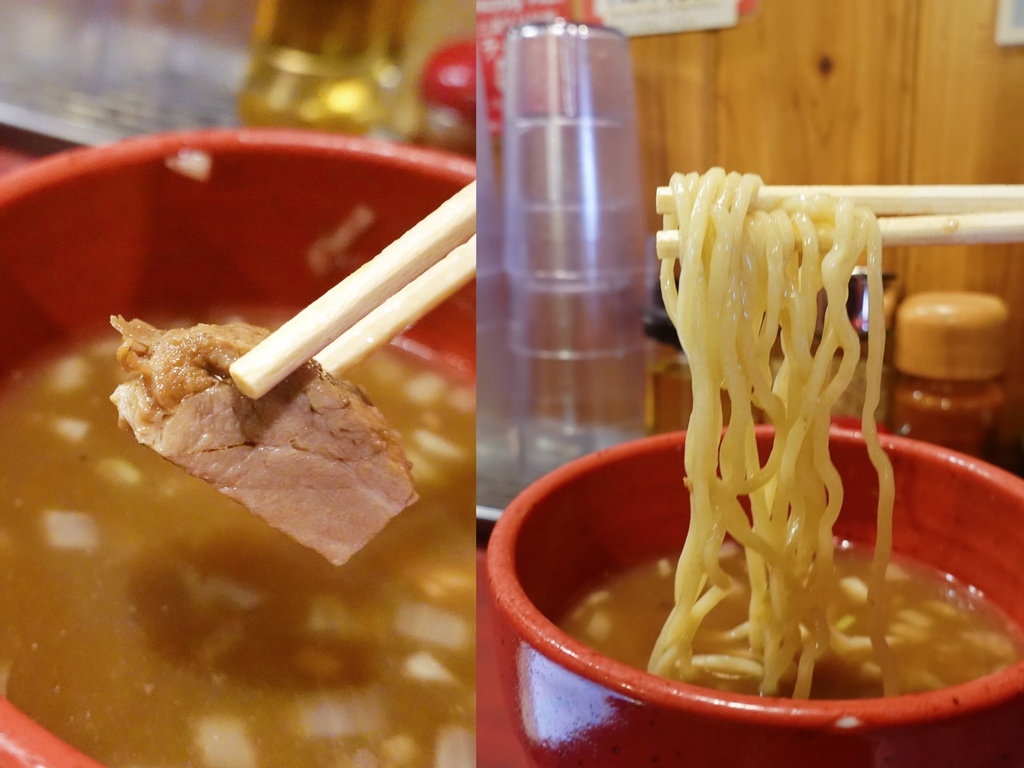 話說回來,除了麵體外,我其實也更喜歡沾麵的湯汁,兼具鮮味與豚骨的濃醇,切丁洋蔥口感爽脆,同樣切塊的叉燒肉厚度夠,軟嫩度甚至更好。