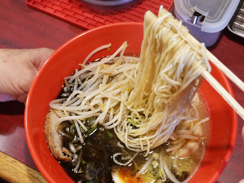 湯頭搭配的是自製麵條,粗細適中,略帶厚度的湯頭可以完整附著在拉麵上,保有麵芯的硬度我很喜歡;溏心蛋的軟滑濃郁與豆芽菜的清爽脆口,替拉麵達到更好的平衡,不會因為濃郁豚骨湯頭而感到膩口。