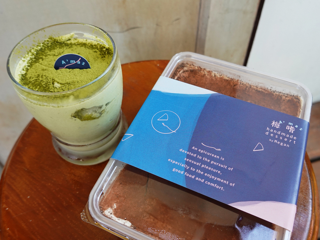 「梅嗜A’maz」老闆-Megan在經營店面前,是在網路上專售提拉米蘇的斜槓女子,無意間尋找到這間中意的店面後,毅然決然辭掉工作,在這兩三坪的空間與心愛的提拉米蘇相伴。