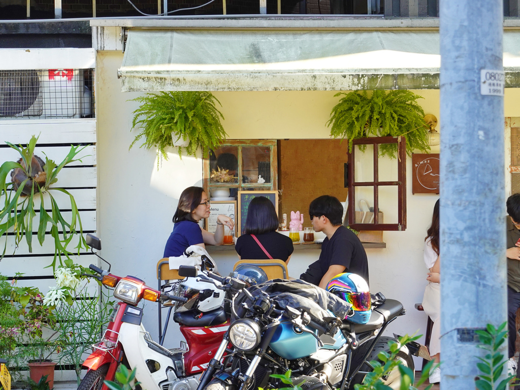「梅嗜A’maz」的店面就位於「建成公園」旁,為甜點工作室「陽苔」的舊址。延續「陽苔」復古帶點文青的樣貌,加上老闆夫妻倆的共同愛好-重機,展現出小店的迷人韻味。