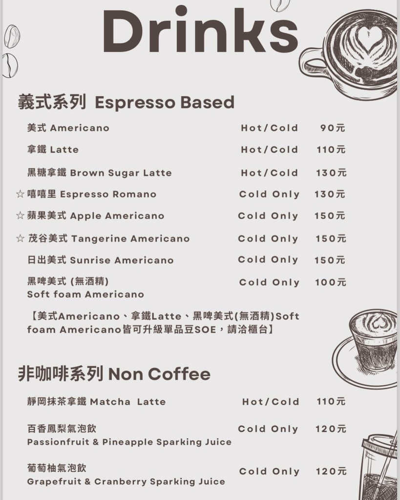 ※備註:內用低消一人一杯飲品 / 免酌收服務費 / 僅收現金 / 提拉米蘇每日限量 / 提拉米蘇外帶盒需事先預訂