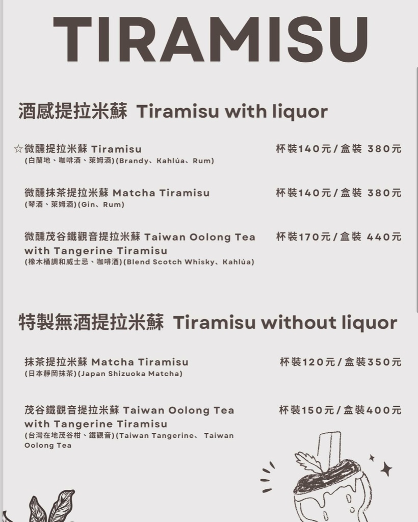提拉米蘇除了口味外,有分為含酒精跟無酒精兩種版本。