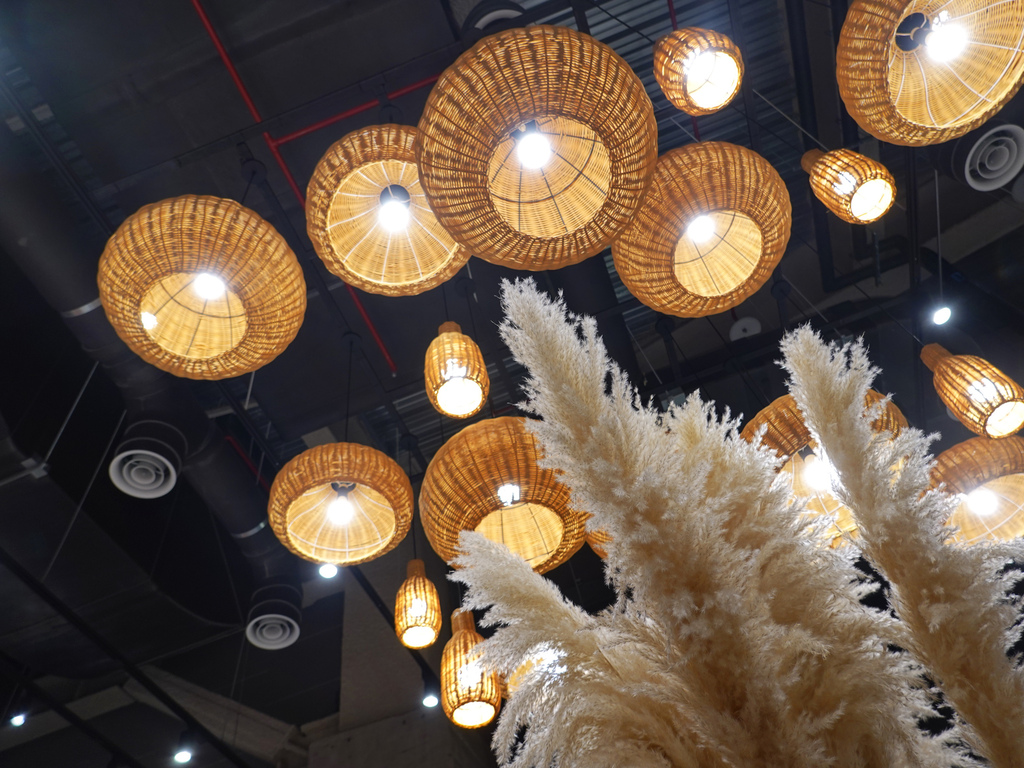 設計師將「三和瓦窯」的各式窯燒磚片經過排列組合,推砌出兼具美感與文化氣息的裝潢風格,與特色燈飾很是融合。