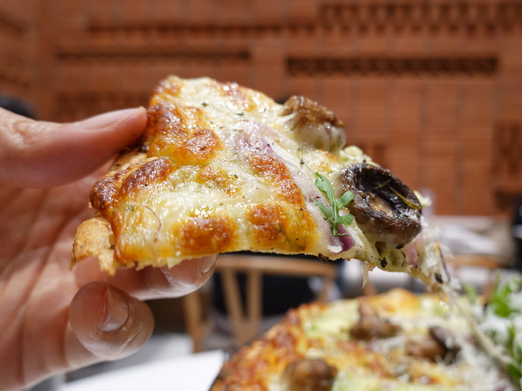 與其他餐點相較之下,「Miacucina」就略顯普通且不合我胃口些,餅皮因為較薄關係,所以中間會因為青醬而較濕潤,與酪梨蘑菇芝麻葉的組合有些單調,雖仍好吃但不是有記憶點且必點的菜色。