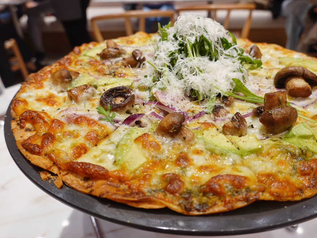 ▲青醬酪梨蘑菇芝麻葉薄餅 $425