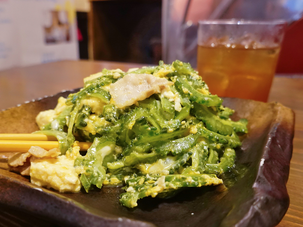 來沖繩我的必吃料理就是炒苦瓜,無奈店內菜單都是滿滿日文,幸好翻譯App夠給力,讓我順利跟店員點到這份我三十餘年來吃過最好吃的苦瓜料理。