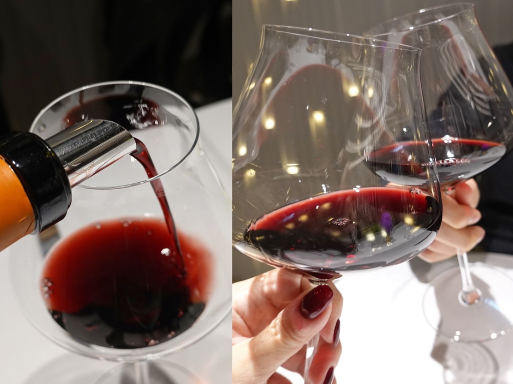 酒體厚實,帶有皮革及可可苦味,單寧味也較明顯,但因為風味豐富且具層次,所以整體無論甜度、酸度、香氣都有著很好的平衡,特別喜歡這杯與乳鴿的搭配。
