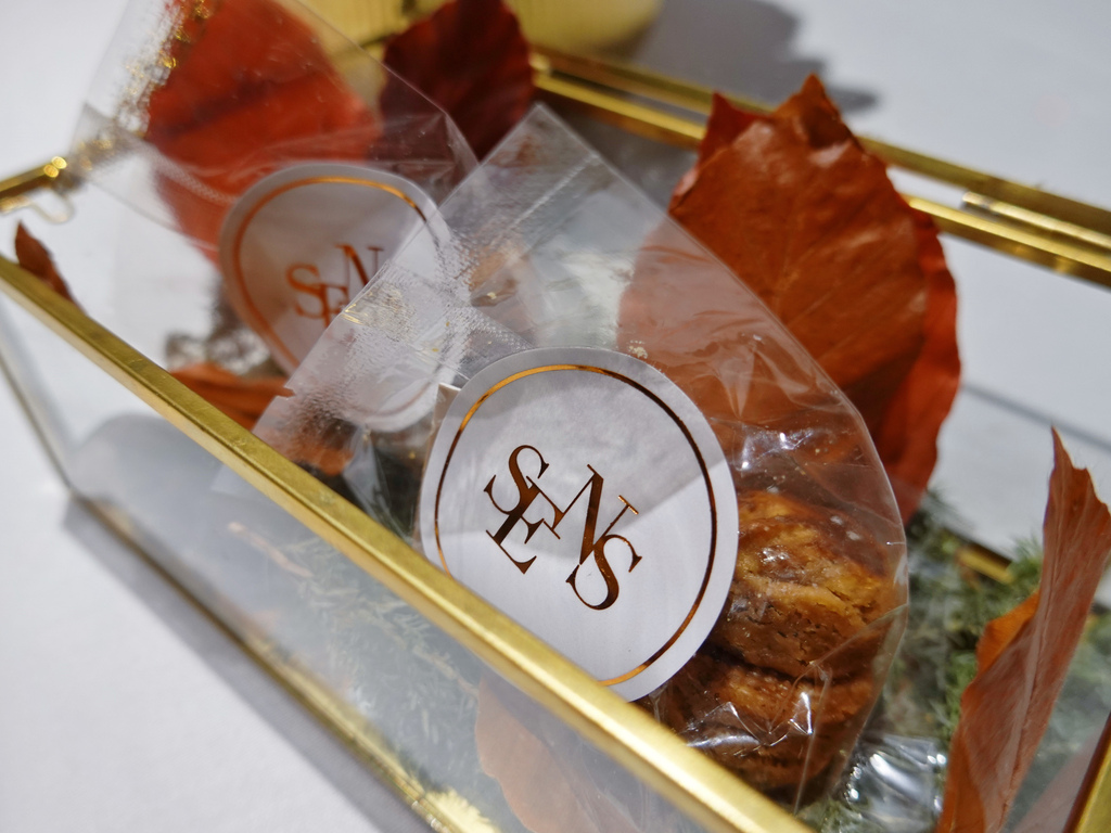 「SENS」遵循傳統法餐,在餐後會有Mignardises,並且提供消費者茶或咖啡搭配。我們分別選擇了嘉義梅山鄉的小葉種紅茶,及桃園新屋鄉果乾茶,果乾茶是特別與本季茶點做搭配,很是用心。