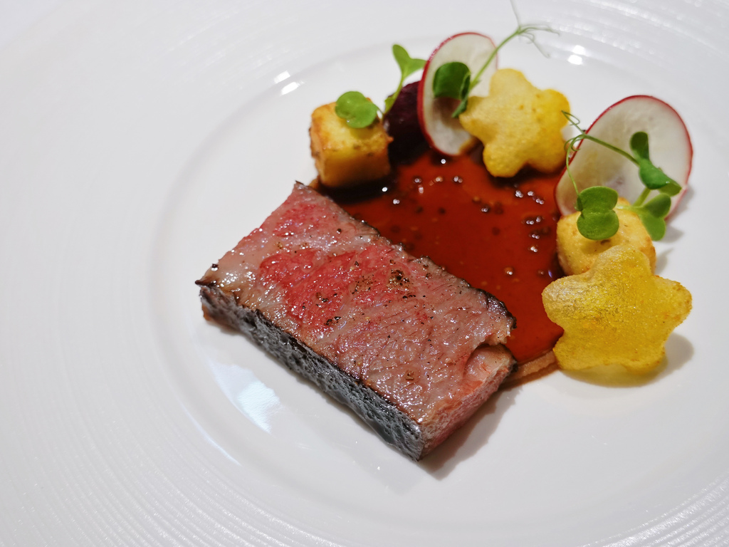 眾多Fine Dining主餐皆選擇將和牛端上桌,所以對於”和牛“這個食材,已有點見怪不怪,因此我更在意料理的手法與調味、搭配。