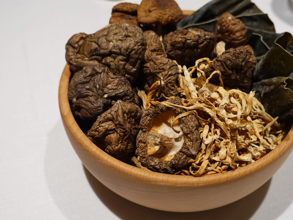 本季湯品是以法式經典澄清湯(consommé)結合東方上湯手法作為概念,利用老母雞、海鮮與南北乾貨一同燉煮。