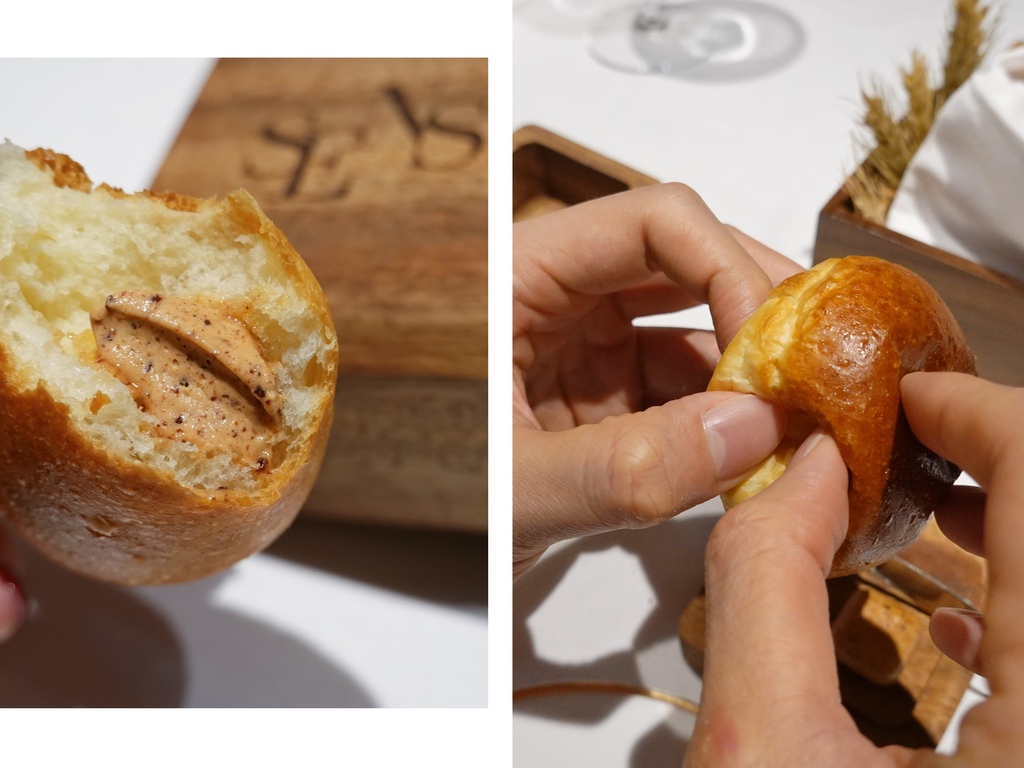 單吃即散發牛奶香甜,口感也是帶濕度的軟,讓我一口接一口停不下來;抹上紅酒臘腸奶油後,則轉為帶鹹香的大人滋味,還能咀嚼到穀物般的細碎,搭配一絕。