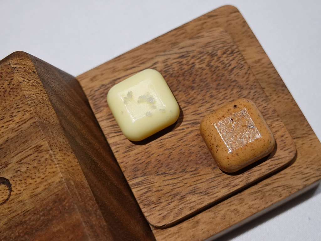 在品嚐茶點至尾聲時,服務生拿上伴手禮—松露布列塔尼。