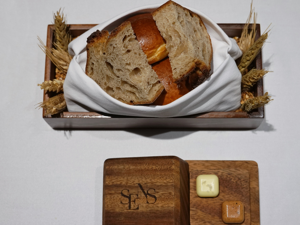 不在菜單上的餐前麵包,「SENS」也很是貼心的提供了兩種麵包搭配兩種醬,令我這麵包控很是開心。
