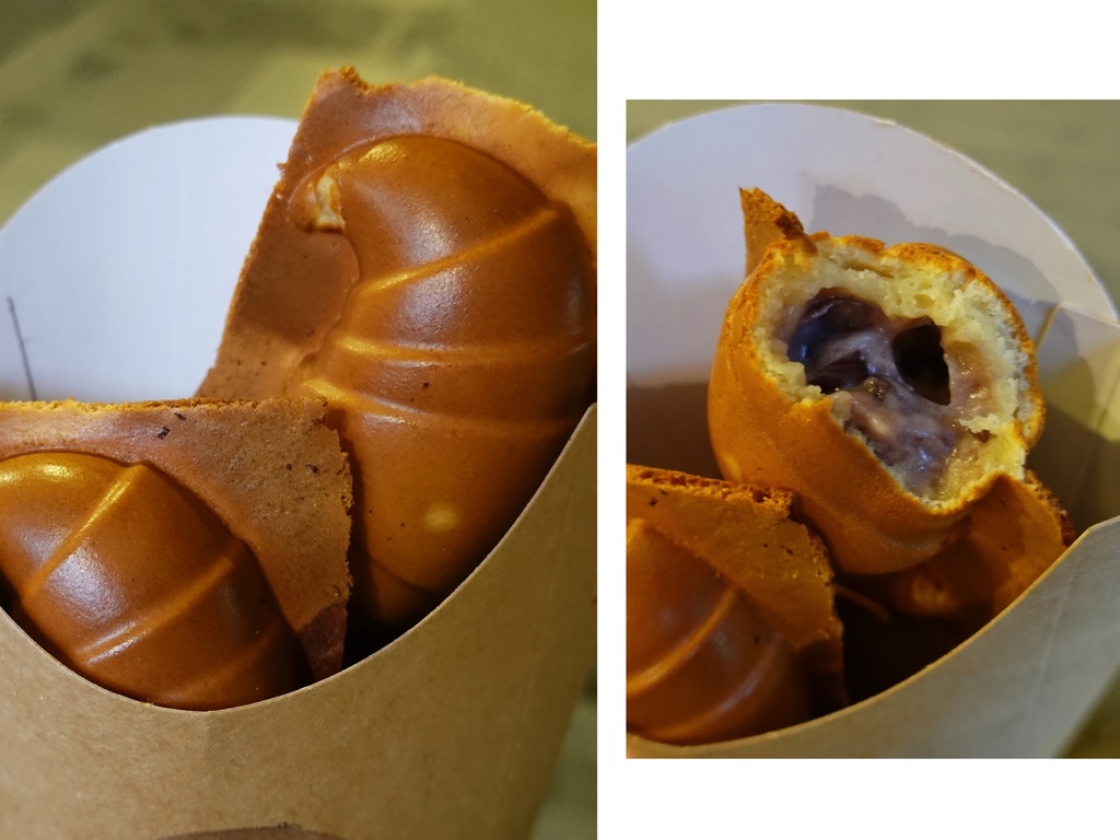必須說,一份$65,僅有五顆的雞蛋糕並不算便宜,加上吸引眼球的造型,我已有網美系店家的心理準備,噱頭大於食物本身。但吃下一口,竟讓我十分驚喜,由於是現烤,所以吃進嘴裡還燙呼呼的,外皮極脆,雞蛋糕質地像是鬆餅般扎實,同時保有濕潤度,極具飽足感。