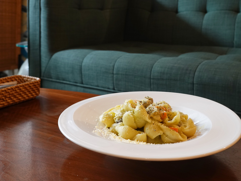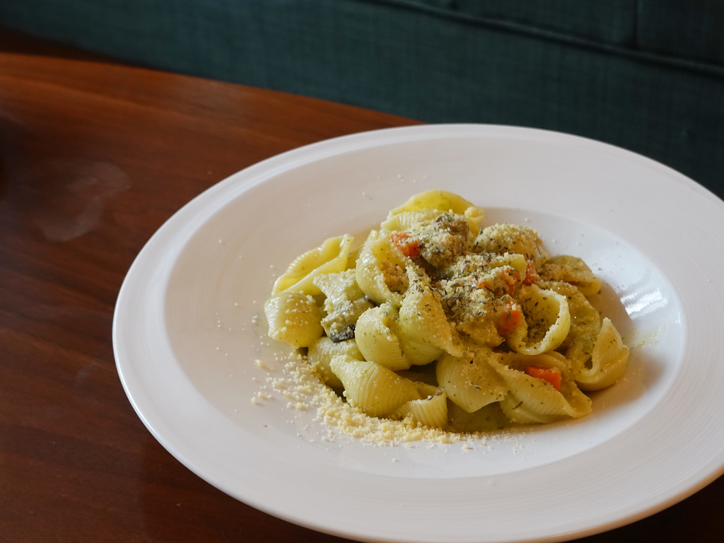而最多人推薦的口味為這道菠菜起司雞肉貝殼麵,甚至有人稱「Apple Museum Café」為被咖啡耽誤的義大利麵店,這倒是令我這義大利麵控十分好奇跟期待。