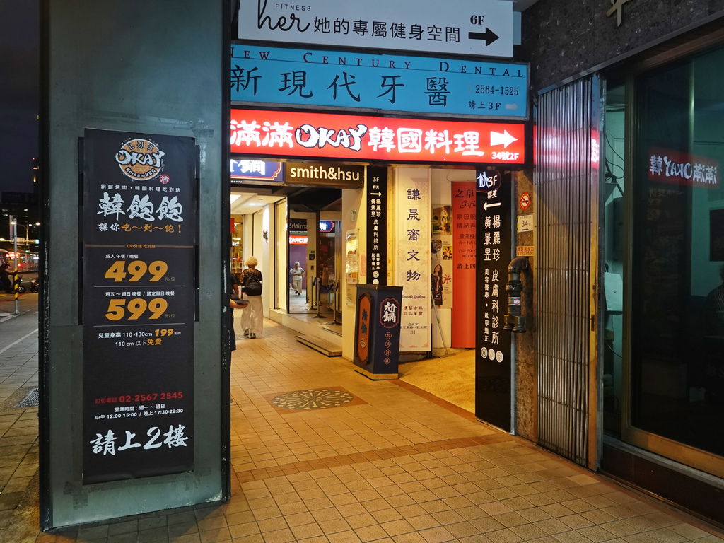 「OKAY 韓國烤肉」就位於「大倉久和飯店」斜對面,從捷運中山站走來約是五分鐘腳程,雖說在二樓,但如此優異的地理位置很難想像藏了一間如此高性價比的韓式烤肉吃到飽。