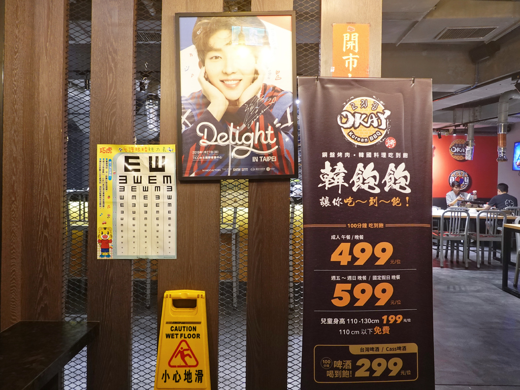 「OKAY 韓國烤肉」的計價方式是分平假日,平日$499+10%,而週五至週日以及國定假日的晚餐也只要$599+10%,如果喜歡小酌還能以$299啤酒喝到飽,大眾交通很是方便完全不需擔心回不了家。