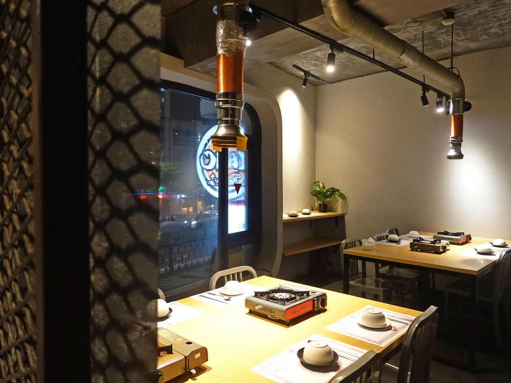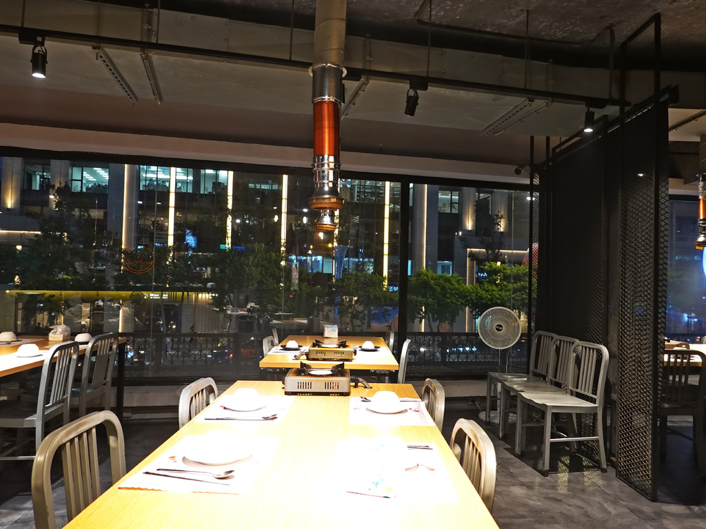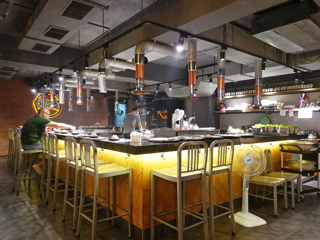 用餐區有分為吧台、桌型座位跟半開放式包廂,而燒肉最怕的油煙味其實也不太需要擔心,因為每個座位上頭都有排煙設備。